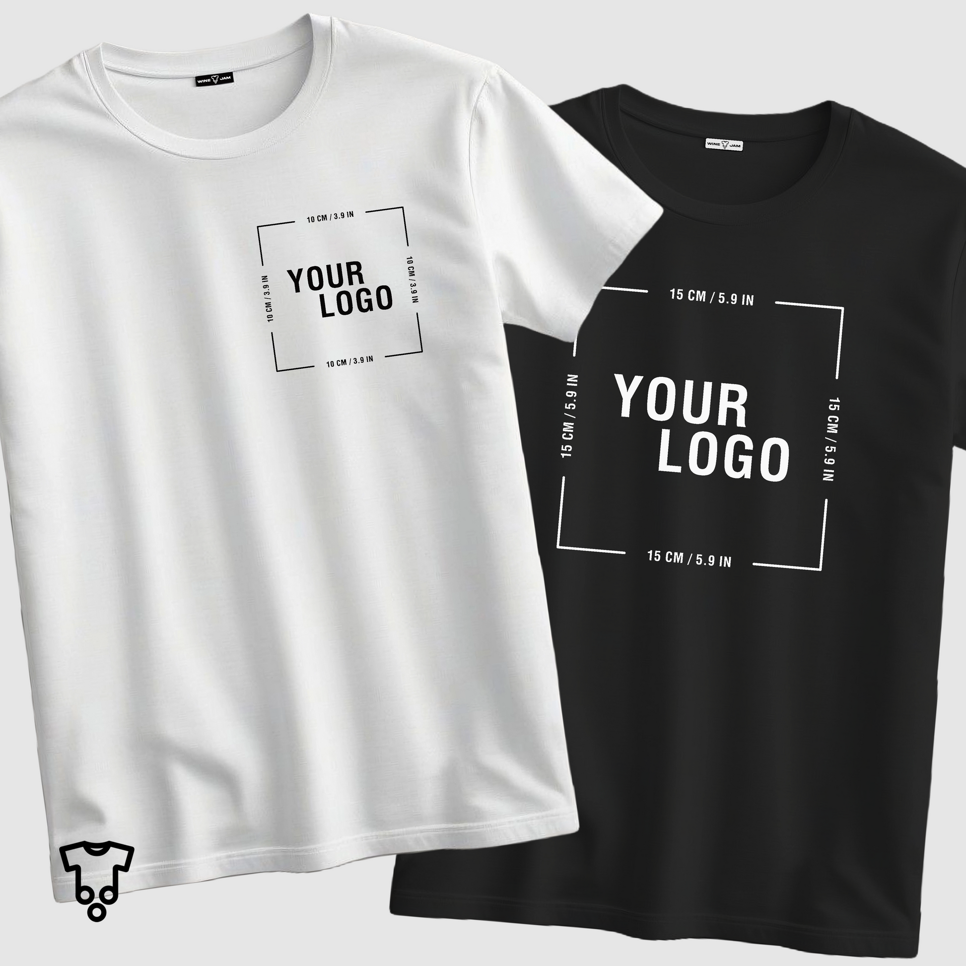 Upload your logo and choose the print size that fits your style: small (5x5 cm / 2x2 in), medium (10x10 cm / 4x4 in), or large (15x15 cm / 6x6 in). Available in classic black or white, it’s the ideal way to bring your brand to life with a professional touch.